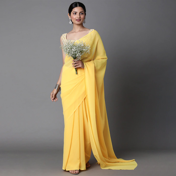 0 review(s) for "Yellow Solid Pure Georgette Saree"